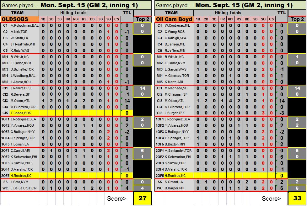 into 2 groups), 10 relief pitchers (divided into 2 groups). It will work in Best Ball format, in that top 2 scores in each group will be your total for that group...