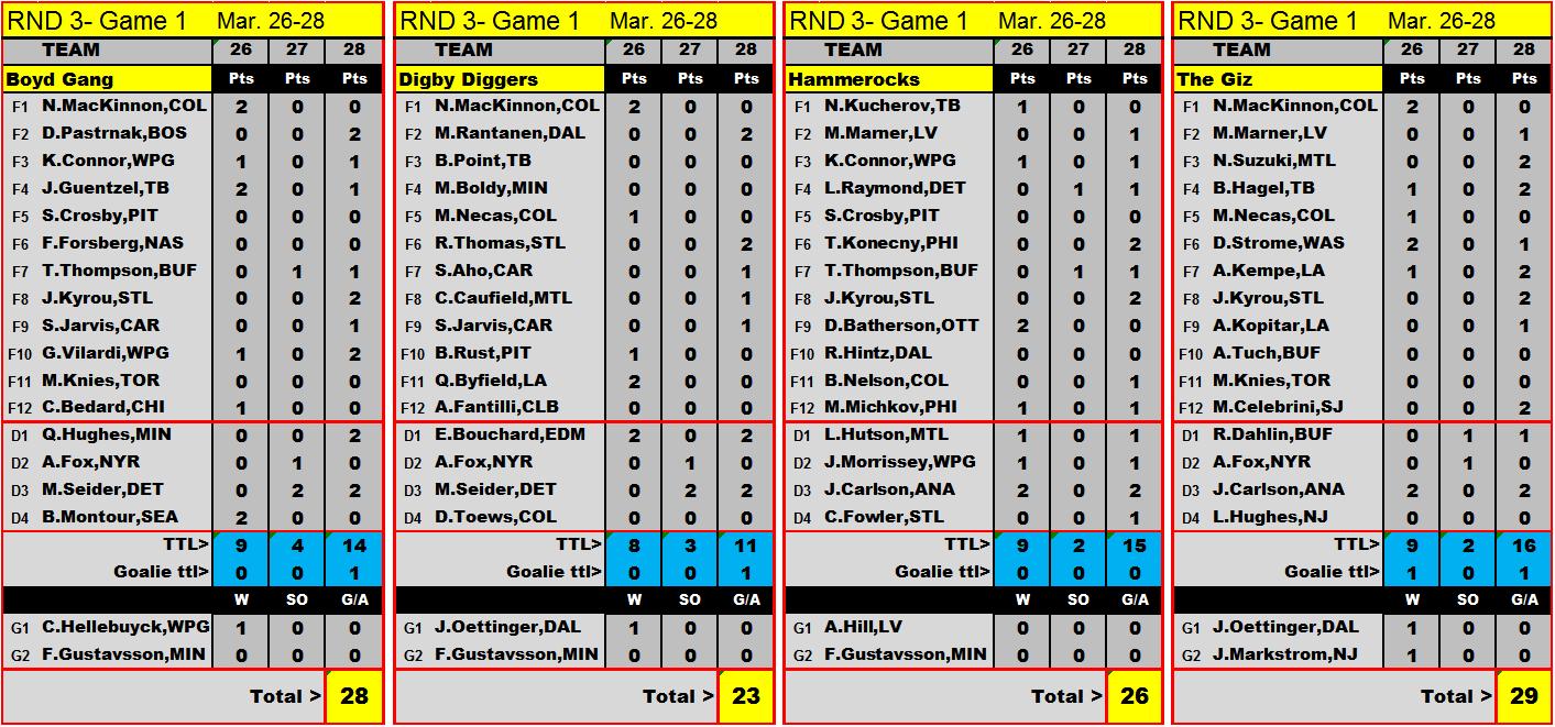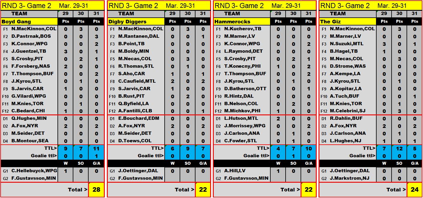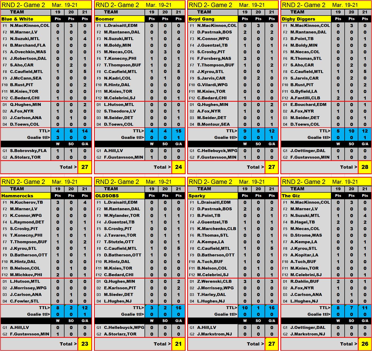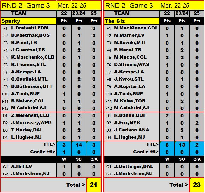 goal/assist...and total pts earned each